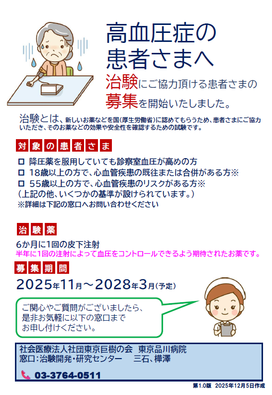 キャプションですその他、現在募集中の治験につきましては、治験開発・研究センターにお問い合わせください。